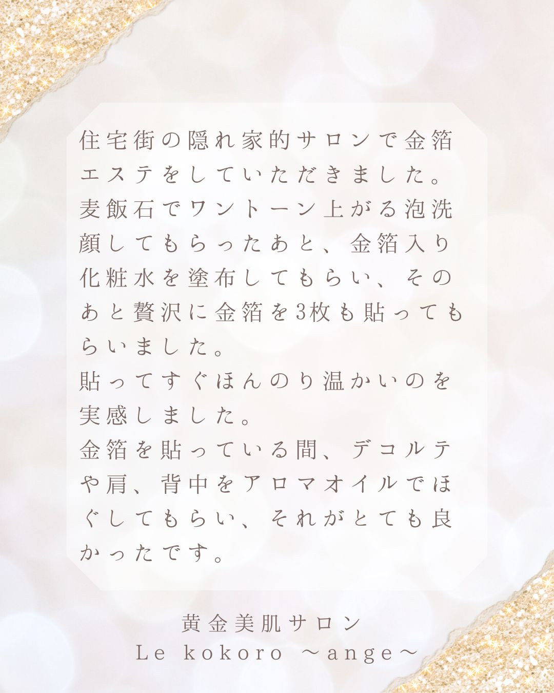 ✨住宅街の隠れ家的サロンで金箔エステをしていただきました。