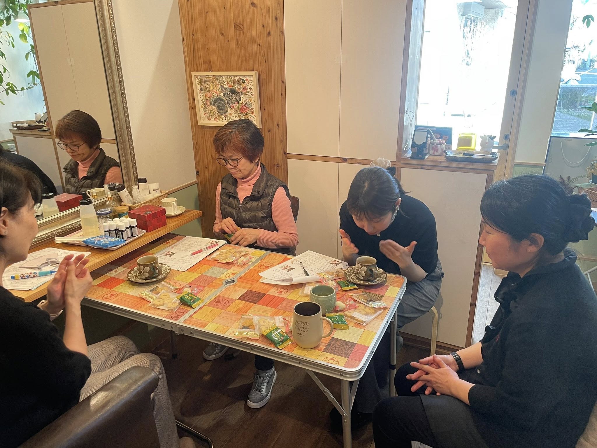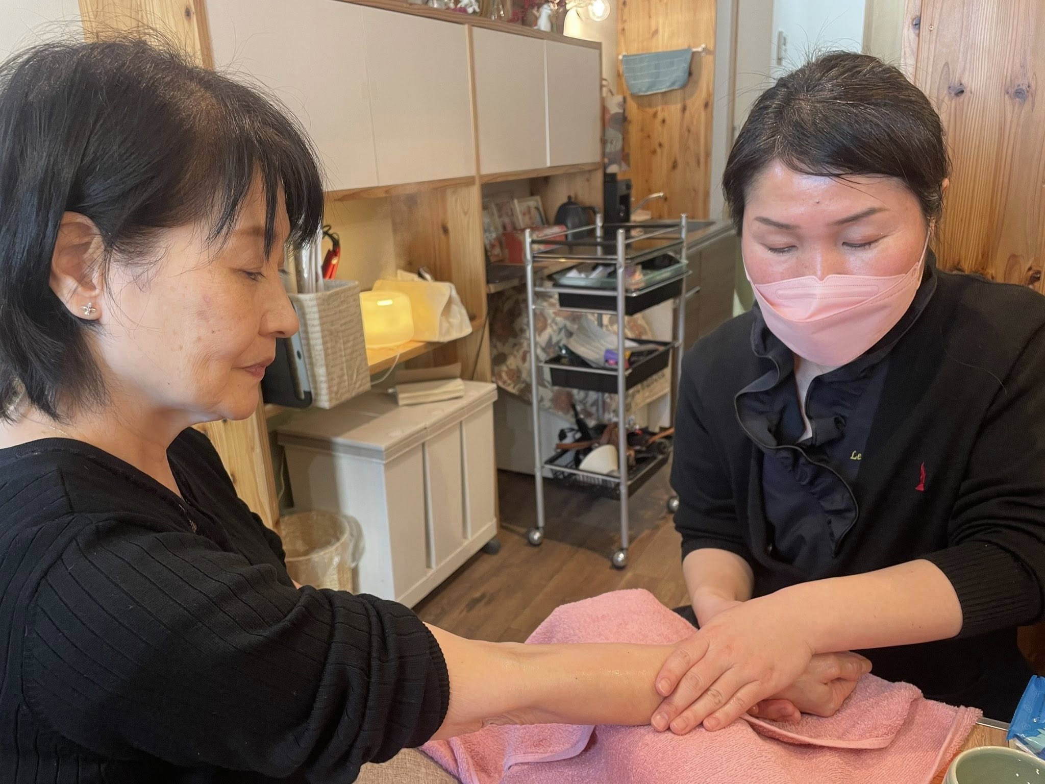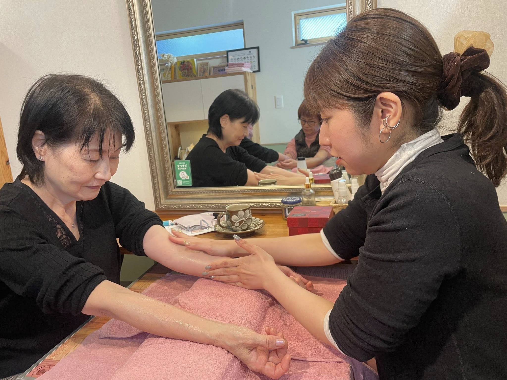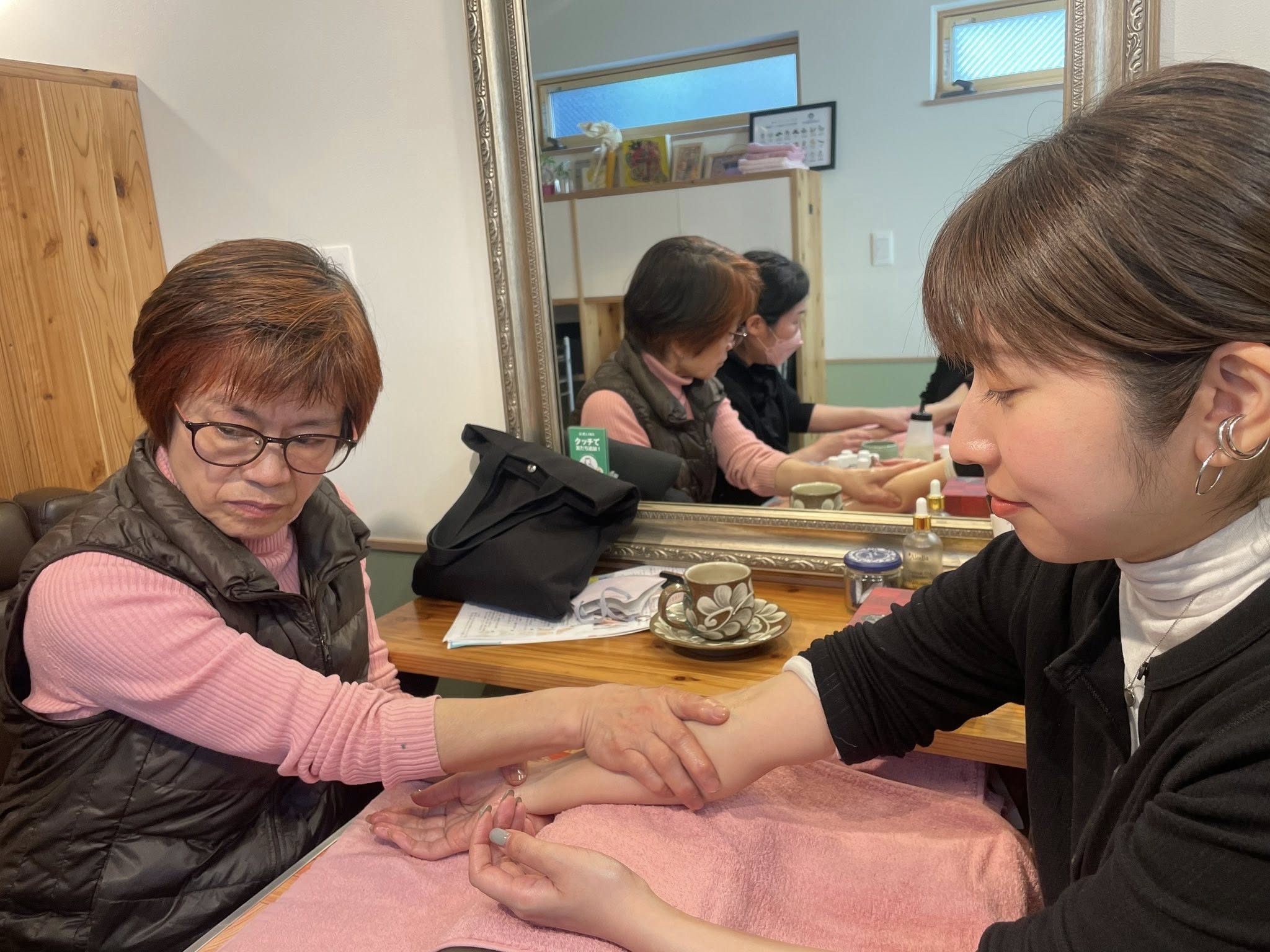 後半はお一人ずつハンドトリートメントを体験していただいた後、