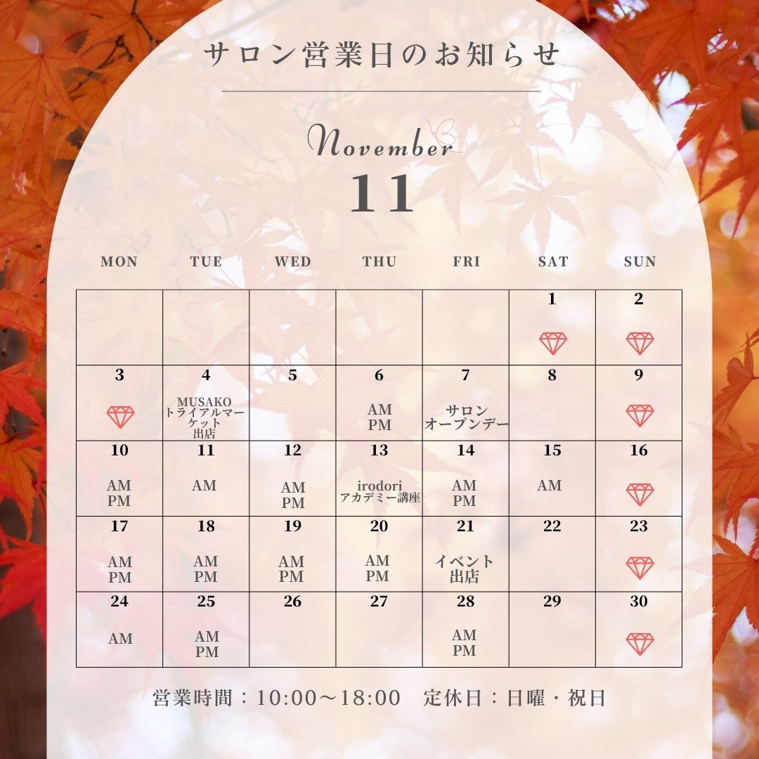 【2025年10月・11月のサロン営業日のお知らせ】