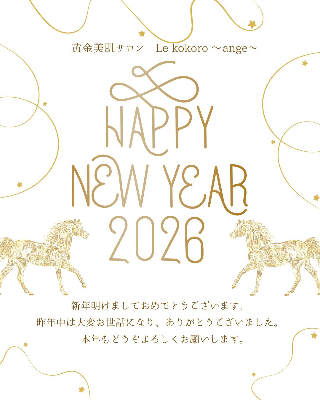 埼玉県坂戸市黄金美肌サロン ル・ココロ ~アンジュ~より 新年のご挨拶を申し上げます。